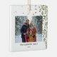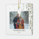 Elegante Weihnachtsschmuck mit Aquarell-Wintergrün und Familienfoto für die Keramik. Es kann mit Ihrem Familiennamen personalisiert sein, sowie mit dem Jahr.