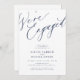 Einfach minimale chische Kalligraphie weiß und marineblau sind wir verlobt Script-Engagement Party Einladung.