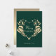 Moderne, elegante, einfache, schöne grüne Grußkarte frohe Weihnachten, mit rustikalen goldenen Herzform Kranz.