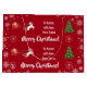 Moderne, elegante und niedliche Weihnachtsgeschenktüte für Kinder mit den Worten "Frohe Weihnachten" in stilvoller Typografie, eine personalisierte Hingabe, die jetzt "To Amber / with Liebe / from Santa" liest, Schneeflocken, eine Illustration eines Einhorns (mit rotem und goldenem Mane und Schwanz), der den Weihnachtsmann in seinen Schlitten zieht, und einen Weihnachtsbaum. Auf einem roten Hintergrund mit Schneeflocken.