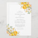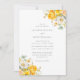 Elegante Hochzeitsfeier in Gelb und Pfirsichblüte mit einem Strauß aus gelben und pfirsichfarbenen Blume und Grünpflanzen. Perfektes Kartendesign für Ihren gelben und pfirsichfarbenen Hochzeitsfeier.