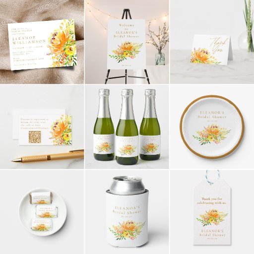 Yellow and Orange Floral Watercolor Bridal ShowerDesignt von Opal Ellery