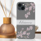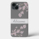 Personalisierter Vorname elegante Zen Kirschblüten rosa Charme auf hellgrauem Hintergrund iPhone Gehäuse ist eine perfekte Mischung aus Natur und Stil. Personalisieren Sie es mit Ihrem, oder einen Namen für ein nachdenkliches und weibliches Geschenk.