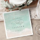 Romantische Hochzeitsservierung im Küstenbereich mit türkisfarbenem abstraktem Aquarell, glitzerndem Meereswellen- und Strandhintergrund, mit stilvollem Drehbuch und eleganten Namen von Schriftart, modern und einfach, ideal für Sandstrandhochzeiten, tropische Hochzeit in Urlaubsort, Hochzeitsfeiern zum Thema Küstenmeere. Sehen Sie sich alle passenden Stücke in der Sammlung an.