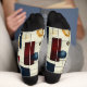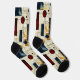 Mit diesen eleganten Abstrakten Socken in zeitlosem Stil mit einem retroinspiriert geometrischen Design in den Farben Marine, Bordeaux und Gold. Die künstlerische Komposition in einer texturierten Creme-Kulisse verleiht dem Ganzen Raffinesse und einen Hauch Vintager Anziehungskraft. Diese Socken sind perfekt für Kunstliebhaber und für diejenigen, die ein einzigartiges Dekorationsaccessoire suchen. Sie verbinden moderne Kreativität mit klassischer Eleganz. Ideal für lässige und formale Optiken, sind sie eine kühne und doch raffinierte Ergänzung zu Ihrem Kleiderschrank.