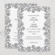 Zeitlose schwarz-weiße Hochzeitseinladung mit eleganter, handgezeichneter Rosenumrandung und sauberer, zentrierter Typografie. Das minimalistische monochrome Design wirkt sowohl klassisch als auch modern – perfekt für formelle, romantische, Garten- oder Black-Tie-Hochzeiten.