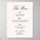 Dieser personalisierte elegante und klassische schwarze und weiße Hochzeitsbar-Poster verleiht Ihrer Hochzeitsbar einen anspruchsvollen Touch. Als stilvolles Hochzeitsbar-Schild gestaltet, hebt es Ihre Hochzeitssignature-Drinks schön hervor und wertet jede Hochzeitsbar-Dekoration auf. Perfekt für Hochzeitsbar-Ideen, verbessert es die Dekoration Ihrer Hochzeitsbar und zeigt eine polierte Hochzeitsbar-Speisekarte. Ideal für ein raffiniertes Hochzeitsbar-Setup, passt dieses zeitlose Design nahtlos in eine schwarze und weiße Hochzeit, italienische Hochzeit, viktorianische Hochzeit und vintage italienische Hochzeiten.