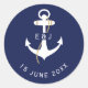 Elegante Anchor Nautical Wedding Initials Runder Aufkleber