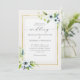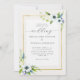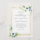 Elegante Anemone Blue Gold Floral Frame Wedding Einladung
