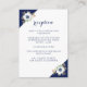 Weiße anemonische Blume mit goldenen Zweigen und Blätter, die einen schönen Rahmen bilden. (Gold ist kein echtes Gold, sondern gedruckt.) Navy Hintergrund. Bride und Groom's Monogramme mit goldenen Blätter. Schlichtes und modernes Hochzeitsdesign.