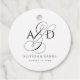 Elegante Initial Script Monogram Classic Gastgeschenk Hochzeit Tags mit einem zarten Ampersand und Ihre Initialen, zusammen mit den Namen der Braut und des Bräutigams und dem Hochzeitstermin.