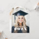 Bogenförmige Foto-Ankündigungskarte mit Ihrem Foto und dem Namen des Absolventen in einem modernen, eleganten Serif-Schriftart mit dem Jahr und der Schule unten. Fügen Sie auf der Rückseite ein zusätzliches Foto und eine benutzerdefinierte Meldung hinzu.