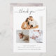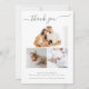 Diese elegante Geburtsankündigungskarte zeichnet sich durch einen einfachen, minimalistischen, weißen Hintergrund und graue Kalligraphie aus. Der "Dankeschön"-Header befindet sich in einem kalligraphischen Skript, und Ihr eigener Text - Babyname und Statistik - ist in klassischer Typografie. Die Karte verfügt über eine Collage aus drei Fotos Foto. Auf der Rückseite befindet sich ein komplettes Foto. Erstellen Sie Ihre eigene Geburtsankündigung und Babydusche-Dankeschön-Karte, indem Sie auf den Knopf "Personalisieren" klicken und die Vorlagen durch Ihre eigenen Daten und Fotos ersetzen. Perfekt für ein kleines Mädchen und einen kleinen Jungen!