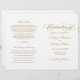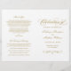 Die Hochzeitsfeierlichkeiten "Celebration of Sacrament of Matrimony" in Edelweiß und antikem Gold beinhalten Vintage Kalligraphieskripte mit wunderschönen Schnörkeln und einen Akzent im Scrolldesign. Personalisieren Sie den benutzerdefinierten Text für Ihr Brautparty, Zeremonie Informationen, danke, und in Erinnerung (oder andere) Nachrichten. Hinweis: Diese Textgewichtspapierprogramme kommen flach an und müssen zum Zusammenbauen zusammengelegt werden.