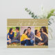 Diese moderne und stilvolle Hochzeit speichern die Datums-Ankündigungskarten enthalten drei 2 x 3" Verlobungen Fotos mit dem Datum in elegantem Drehbuch. Personalisieren Sie die Kartenvorlagenformulierung auf der Vorder- und Rückseite der Karte für Ihren großen Tag. Der antike goldene Hintergrund und die Textfarbe können individuell auf Ihr Hochzeitsfarbschema abgestimmt werden.