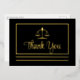 Einfache, elegante und moderne schwarze Abschluss oder berufliche Anwälte oder andere rechtliche berufliche "Danke" mit echten Goldfolien Frontend Maßstäbe für Gerechtigkeit und Text mit rechteckigem Rahmen und doppelten Boden Linien und schwarzen Text Postkartendesign mit Hintertafel für Rücksendeadresse. Originelles Design von Holiday Hearts Designs (alle Rechte vorbehalten).