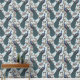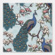 Dieses elegante aquamarine Pfauen und Magnolia-Blume Blumenmuster im Stil der Chinoiserie mit handgezeichnet blauen und aquamarinen Pfauen, die an den Ästen der Magnolia-Bäume in Blüte auf einem weichen blauen Hintergrund mit magnolienblütigen Silhouetten gekrönt sind.