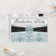 Wunderschönes Damastmuster in aquamarinem Glitzer auf einem Gradientensilber-Hintergrund - mit schwarzem Band umhüllt und mit einer passenden Blume mit Juwelierkern und ovalem Diamantenzentrum geschmückt. HINWEIS: Alle Diamanten, Gold, Glitzer, Bänder, Bögen, Juwelen, Edelsteine und Silber sind künstlerisch hergestellt keine echten Diamanten, Gold, Glitzer, Bänder, Bögen, Juwelen, Edelsteine oder Silber werden für dieses Produkt verwendet.