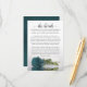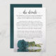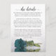 Diese wunderschöne Hochzeitszimmerkarte ist so konzipiert, dass Sie mehr Platz für alle Informationen haben, die Ihre Gäste benötigen, wie z.B. Website, Registrierung, Empfang, Reise, Unterkunft oder andere Details. Die Karte weist ein wunderschönes Design auf, mit einem Single, der die aquamarine Rose reflektiert, und einem laksigen Schriftzeichen mit dem Titel "die Details". Die Rückseite ist türkisblau und marmoriert.