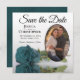Elegante Aquamarine Rose auf Weiß mit Oval Foto Ho Save The Date