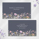 Ein modernes, elegantes Design mit dunkelgrauem Hintergrund und am unteren Ende ein wunderschöner, eleganter Rahmen von Aquarellfarben-Wildblumen. Die cremefarbene Typografie lässt sich einfach an Ihren Namen und Ihre Geschäftsdetails anpassen.