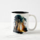 Stilvolle Elegante Schönheit und Essenz einer Herbstwald-Tasse, die bei Sonnenuntergang eine einzigartige, handgefertigte Baumlandschaft im Wald beherbergt, faszinierten die warmen Farbtöne der Untergrundsonne und das friedliche Waldambiente. Durch die Bäume schlängeln sich Wege und laden zu Entdeckungen und Outdoor-Aktivitäten wie Wandern oder Camping ein. Eine Wasserquelle trägt zur natürlichen Schönheit der Szene bei. Dieses Kunstwerk bringt die Ruhe und Schönheit der Natur in jeden Raum. Diese typografische Tasse ist perfekt für ein personalisiertes Geschenk für Hochzeiten, Geburtstage und andere Veranstaltungen.