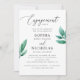 Watercolor Grün Engagement Party Einladung mit elegantem Skript. Geeignet für den botanischen Garten / Sommer Natur / Wald Thema im Freien.