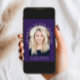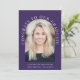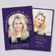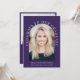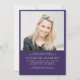 Elegante, dunkle lila Abschlussfeier mit dem Foto des Absolventen in einem Bogen-Rahmen und "Glückwunschs To Our Graduate" in weißer Serifentypografie und ihrem Namen, Schule und Klassenjahr in schlichter, moderner weißer Typografie. Fügen Sie auf der Rückseite ein zusätzliches Foto hinzu und personalisieren Sie die Party-Details.