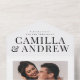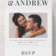 Ein modernes Foto mit eleganter und stilvoller Hochzeitseinladung mit großen Namen und einem horizontalen Foto. Diese schwarz-weiß alle in einer Hochzeitseinladung hat RSVP-Karte abreißen lassen. Klicken Sie auf die Schaltfläche Bearbeiten, um dieses Design anzupassen.