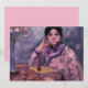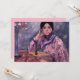 Dieses Design zeigt ein Gemälde des japanischen Impressionisten Fujishima Takeji (1867-1943). Es zeigt eine elegante asiatische Dame, die ein traditionelles Kimono trägt, das hauptsächlich rosa und mit einem schwarzen Muster lila ist. Sie ruht sich gegen einen Tisch, auf dem eine kleine Parfümflasche aufgestellt ist. Auf dem Tisch steht auch eine Vase aus rosa Rosen. Es ist ein Bild von zurückhaltendem Luxus und Eleganz.
