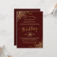 Verzweifelte Zeiten erfordern verzweifelte Maßnahmen! Aufgrund der anhaltenden Notlage im Gesundheitswesen finden Paare kreative Wege, ihre Hochzeiten zu feiern. Diese schöne Einladung wird Ihre Gäste einladen, virtuell an einem Livestream Ihrer Hochzeit teilzunehmen. Es zeichnet sich durch ein schlichtes und dennoch elegantes Design aus, das mit einer bordeauxroten Schriftzeichen-Kalligraphie auf bordeauxrotem Hintergrund und einem feinen, goldenen Imitat-Filigree in den Ecken aufwartet. Weil Liebe anhält!