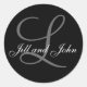 Elegante Aufkleber für die Monogramm-Gastgeschenk Hochzeit mit Namen. Von Elke Clarke ©200. Passen Sie Ihre persönlichen Daten an.