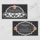 © 2014 Sozialite Designs. Elegantes, dekoratives Banner im Swirl-Design und gestreifter Hintergrund, in schwarz, grau und weiß baker Visitenkarte. Das Design besteht aus einem Gourmet-rosa und grünen Kuchen-Design auf der Vorder- und Rückseite. Alle Designelemente können durch das Anpassen der Visitenkarte individuell verschoben, verändert oder gelöscht werden.