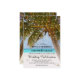 Elegantes Hochzeitsziel am Strand mit einer Palme, die mit Lichtern aus Streichmärchen dekoriert ist, einem weißen Sandstrand mit kristallblauem Ozean, Sternenfisch und einer Hochzeitsvorlage, die leicht mit Ihren eigenen Details zu personalisieren ist.