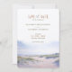 Mit dieser atemberaubenden Save the Date Karte, die wunderschön gestaltet ist und eine ruhige Aquarell-Illustration der Außenbänke, North Carolina, enthält, erleben Sie die Essenz Ihrer bevorstehenden Hochzeit am Strand. Die Vorderseite besticht durch elegante Typografie mit sanften, erdigen Tönen von Taupe, Beige und Sandbraun, während die Rückseite eine ruhige Promenade in Richtung Ozean hervorhebt. Die Karte ist zeitlos und modern und bietet eine raffinierte Kalligraphie mit natürlichen, beruhigenden Farben wie Himmelblau, Pastellfarben und warmen Sand. Sie ist perfekt für eine Feier an der Küste.