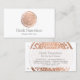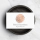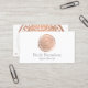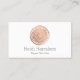 Ein handgemalter Imitat Rose goldener Kreis mit weißer Mandalaätzung wird zu einem einzigartigen Logo auf diesen modernen Visitenkarten. Die Rose Gold bietet eine luxuriöse Ästhetik, während die Mandala ein etwas boho-Ambiente verleiht. Dieses Design wurde für Beauty-Salons, Hautpflegemaschinen, Boutiquen, Massagetherapeuten und vieles mehr entwickelt. Diese zweiseitige Visitenkarte bietet Platz auf der Rückseite für Ihre Kontaktdaten. Kunst und Design © 1201AM Design Studio | www.1201am.com