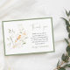 Eine einfache, elegante Dankeskarte für Trauer und Gedenken, die während oder nach der Beerdigung übergeben werden kann. Dekoratives und einfaches botanisches Motiv mit einem hübschen orangen Vögelchen und grünen Blättern auf weißem Hintergrund mit salbeigrüner Umrandung. Fügen Sie Ihre persönliche Dankesnachricht hinzu.