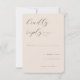 Diese Hochzeits-RSVP-Karte verfügt über ein minimalistisches Design mit einem weichen beigen Hintergrund, das ein elegantes und übersichtliches Aussehen schafft. Das Layout enthält viel Leerraum, was die Lesbarkeit und Raffinesse erhöht. Eine fließende Schreibschrift hebt den Satz "bitte antworten Sie bis zum 1. August" hervor, während serifenlose Schriften klare Antwortmöglichkeiten wie "nimmt gerne an" oder "lehnt leider ab" bieten. Anpassbare Platzhalter ermöglichen eine Personalisierung, wodurch sie perfekt für formelle Veranstaltungen ist, die einen Hauch von Klasse und Einfachheit erfordern.