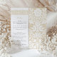 Diese wunderschön gestaltete Hochzeitskarte verleiht Ihrem Empfang mit seinem eleganten Beige- und Elfenbeinblumenmuster eine Touch der Eleganz. Die Karte zeichnet sich durch ein klassisches Blumenmotiv aus, das das luxuriöse Ambiente Ihres Hochzeitstisches unterstreicht. Die Vorderseite der Karte präsentiert die Speisekarte in einem raffinierten Layout, sodass Ihre Gäste die köstlichen Gerichte vorwegnehmen können, während die Rückseite zeigt das aufwändige Blumendesign und sorgt für einen einheitlichen und stilvollen Look. Diese Karte ist perfekt für traditionelle oder Vintag inspiriert Hochzeiten geeignet und passt sich nahtlos in Ihre gesamte Hochzeitsdekoration ein, was sie zu einem unvergesslichen Teil Ihres besonderen Tages macht.