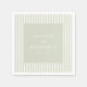 Diese Hochzeitsserviette zeigt ein minimalistisches und elegantes Design mit vertikalen Streifen in hellbeiger und weißer Farbe, die ein zentrales, hellgrünes Rechteck einrahmen. Das Layout enthält eine saubere, moderne Typografie, bei der die Namen "Lauren" und "Benjamin" prominent dargestellt sind, zusammen mit einem Datum, wodurch ein ausgewogenes und anspruchsvolles Aussehen entsteht. Die gedämpfte Farbpalette verstärkt die ruhige und verfeinerte Stimmung und macht sie perfekt für formelle Anlässe. Der zeitgenössische Stil verbindet Einfachheit mit klassischen Elementen und ist ideal für Paare, die an ihrem besonderen Tag eine zurückhaltende Eleganz suchen.