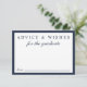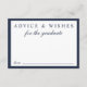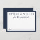 Elegante blaue Kapselkarte für Ihre Abschlussankündigungen und Party Einladungen für Familie und Freunde, um ihren Rat und Hoffnungen für die Zukunft des Absolventen auszudrücken. "Advice & Wishings For The Graduate" ist in klassisch blauer Schrift und Typografie geschrieben. Auf der Rückseite, personalisieren Sie mit dem Namen des Absolventen, Schule und Klasse Jahr in Gold Typografie.