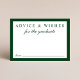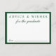 Elegante grüne Einschließungskarte für Ihre Abschlussankündigungen und Party Einladungen für Familie und Freunde, um ihren Rat und Hoffnungen für die Zukunft des Abschlusses auszudrücken. "Ratschläge & Wünsche für den Abschluss" ist in klassischer grüner Schrift und Typografie geschrieben. Auf der Rückseite, personalisieren Sie mit dem Namen des Absolventen, Schule und Klasse Jahr in Gold Typografie.