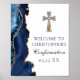 Modernes Marineblau und Goldmedaille zieren dieses elegante Plakat für Ihre Christliche Zeremonie. Mit einem Namen unter dem Kreuz für einen wunderschönen religiösen Ausdruck für ein methodistisches oder katholisches Kirchenkirchen-Party.