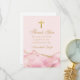 Elegantes Rosa und Goldmedaille dekorieren diese hübsche personalisierte Bestätigung danke Karte für die Christliche Zeremonie eines Mädchens. Passen Sie mit einem Namen und Ihrer Nachricht unter dem schönen religiösen Kreuz an.