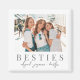 Dieser schlichte und elegante boho-inspirierte Anziehungspunkt für das Foto ist eine wunderschöne Art, während der Ferien Freundschaft zu feiern. Die Vorderseite bietet Platz für ein beliebtes Foto, darunter "Besties" in einem klassischen Serif-Schriftart, und Soft Script-Text, um Ihre Namen oder eine kurze Nachricht hinzuzufügen. Er ist mit einem weißen Hintergrund und einem weichen, grauen Text gestaltet und hat einen zeitlosen Look, der mit jedem Dekor funktioniert - egal, ob auf einem Kühlschrank, einem Schließfach oder einer Magnetkarte. Der Rücken ist eine glatte Magnetoberfläche, und das Jahr kann für eine personalisierte Touch hinzugefügt werden, die den Augenblick in der Zeit markiert. Alle Schriftart, Farben und Fotos können individuell angepasst werden. Ein wohlüberlegtes und persönliches Urlaubspensum für Ihren besten Freund.