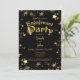 Elegante Einladungen in Schwarz und Gold mit funkelnden Sternen.
