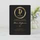 Elegante Black and Gold Monogram Family Baby Dusch Einladung