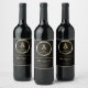 Elegante Black and Gold Monogram Family Baby Dusch Weinetikett