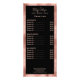 Eine Salon-Preisliste mit einer eleganten Goldfolie aus Schwarz und Rose, die Platz für Ihren Namen, Beruf und Service-Preise bietet.