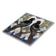 Elegante Jugendstil-Vögel, Deko Vintager antiker, stilvoller, glamouröser Vogel, klassisches Weißgold, Tier-Paare, traditionelles Retro-Gemälde aus den 20er Jahren, wunderschöne extravagante Vogelarten in der Natur, ausgeklügelte Schwarzvogel, dunkelblaue aquamarine türkisfarbene Taubendünen, 20er dunkle Keramik
